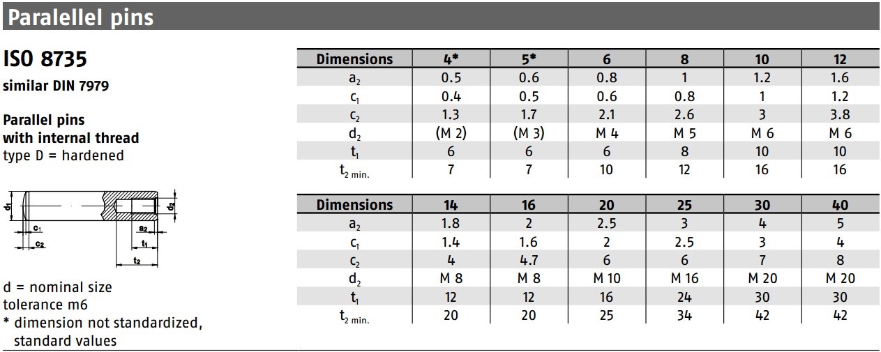Kolík válcový kalený s vnitřním závitem, DIN 7979D, povrch FE