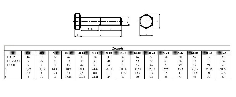 Šroub šestihranný DIN 931, povrch BZN ( bílý zinek ), pevnost 8,8