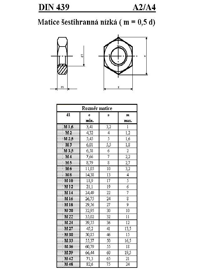 Matice nízká šestihranná, DIN 439B, povrch A2 - NEREZ