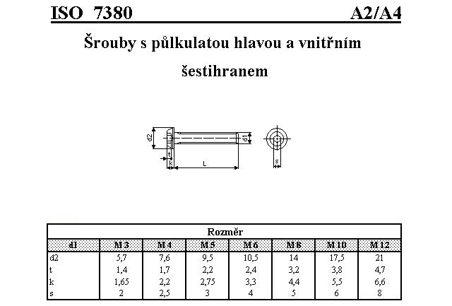 Šroub s půlkulatou hl. vni. šestihranem, AN 9084, ISO 7380, materiál A2 - NEREZ